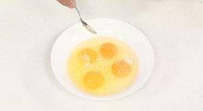 3 雞蛋打入碗內,加入鹽、雞粉。