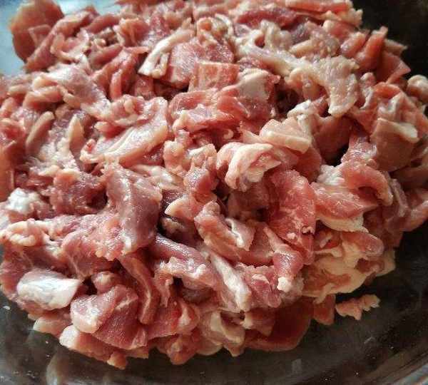 第2步、瘦肉部分切薄片。肥肉和瘦肉剛好2:8,肥肉400克,瘦肉1600克。臘腸要切肉口感才好。