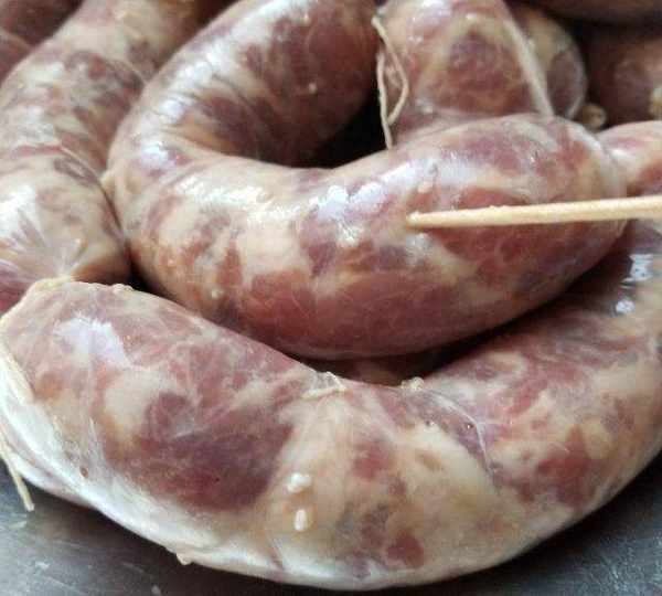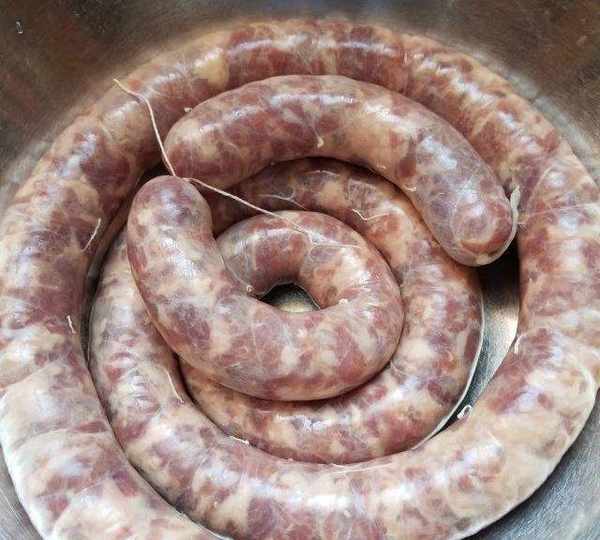 第10步、我習慣灌好一根腸衣,就分段用繩子紮緊。