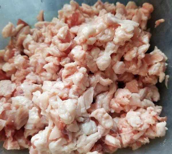 第1步、這次買的夾心肉比較肥,把肥肉切下來,切成小丁。
