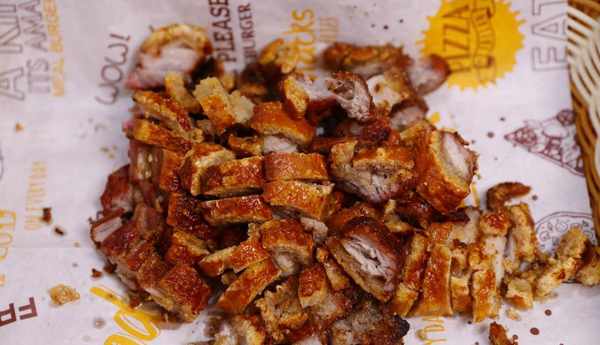 現在先來調料汁。碗中放入兩勺白糖、一勺五香粉、一大勺孜然粉,還有適量的一品鮮醬油和蠔油,調好的料汁放在一邊備用。接下來切肉,把肉切成大小均勻的塊兒,但是豬皮的位置不要切斷。切好的肉放到大碗中,再把剛才調好的料汁澆上去,給它們做一個全方位立體式的按摩,記住每個角落都要把醬汁抹到。醬汁塗好以後最好把肉放到冰箱裡面冷藏兩個小時,讓它更入味。