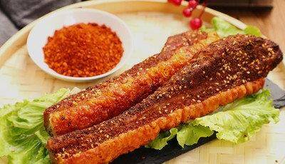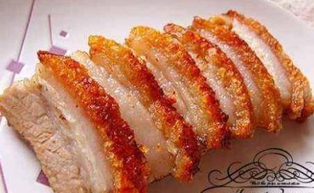 時間到瞭以後,拿一張錫紙,邊緣折厚一些,再把豬肉平鋪在上面,讓錫紙全部包裹在豬肉上,記住兩邊也要折一折。如果你不放錫紙的話,豬肉肯定糊,而且包好錫紙以後烤出來的豬油也不會流得到處都是。再把豬皮表面擦幹,然後用針或者是牙簽密密麻麻地紮上小孔,這一步是讓豬皮起泡的關鍵,紮完孔以後,在豬皮表面刷上一層白醋,再在上面撒上一層厚厚的鹽,如果有粗粒鹽也是可以的。