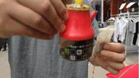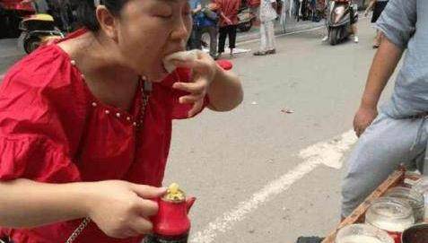 這位大姐的吃相也是醉瞭,但重點不是這個,大姐手裡也拿著一瓶醋,看來,當地人都是這麼吃的,雖然有芥末的辣,但就有人鐘情芥末的這種味道,他們說:吃完以後,嗆得受不瞭來口醋,別提有多爽瞭