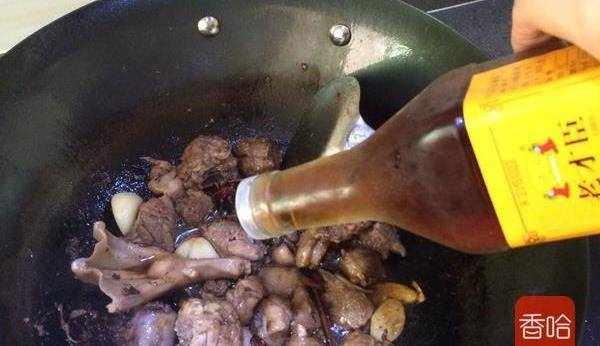 8.接著加入適量料酒,生抽炒至上色。