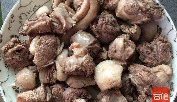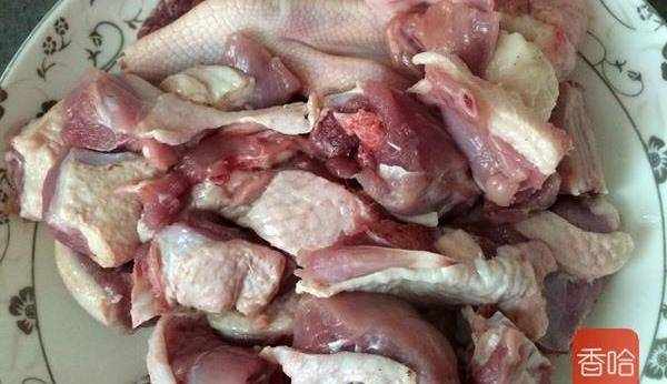 4.鴨塊倒入鍋中,加入適量清水,放兩片薑,滴入幾滴料酒,煮沸兩分鐘後撈出。