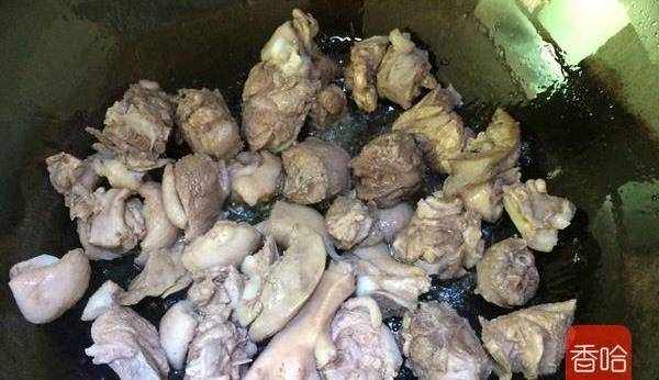 6.鍋裡倒入適量的油,將鴨塊煸炒出香味。