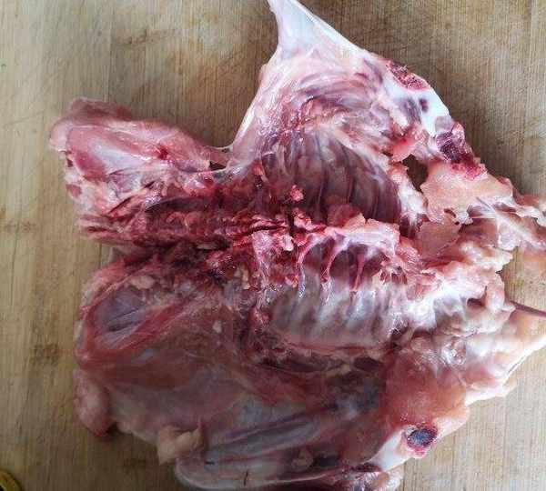 第2步、我買瞭兩副雞架子。這次把兩個雞架子的脖子和雞屁股都一起烤瞭,雞脖子去掉脂肪和皮,雞屁股去掉毒囊,就是雞屁股裡的黃色囊袋。