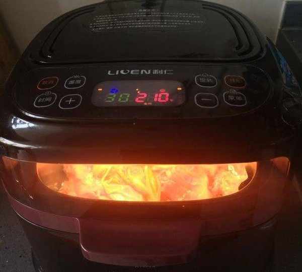 第6步、如果你的炸鍋有烤全雞的功能就直接選烤全雞鍵,如果沒有就按照30分鐘,210℃烘烤。