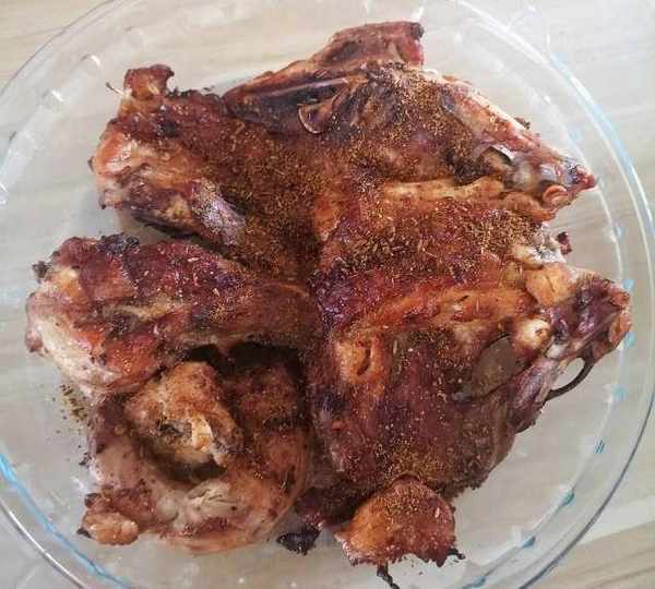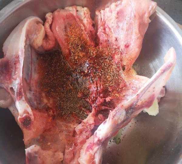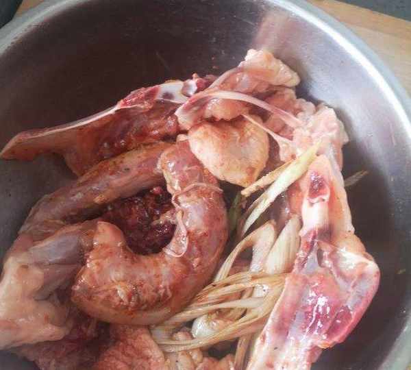 原料:雞骨架、蔥、薑、鹽、白糖、蠔油、生抽、料酒、豆腐乳汁、孜然粉、辣椒面。