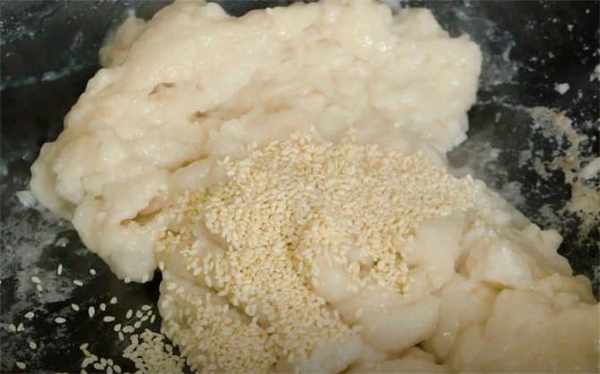 普通面粉、白糖、玉米油、溫水、清水、糯米粉、白芝麻