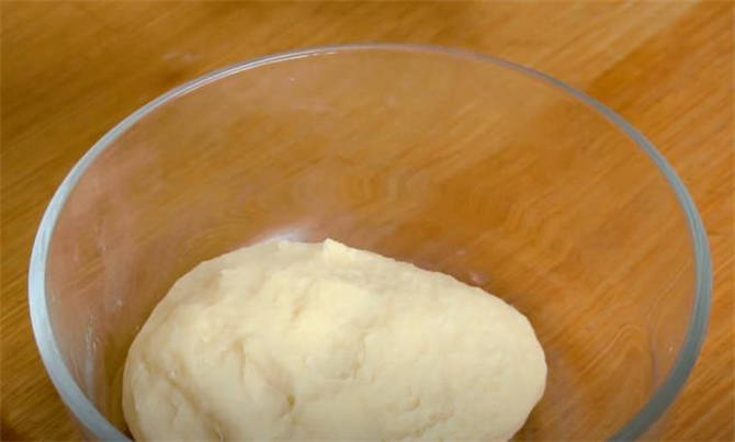 1.首先我們先和老婆餅的面皮,普通面粉150g,20g白糖,15g玉米油,用45毫升左右的溫水和面,攪拌成面絮狀,揉成一個光滑偏軟的面團,密封餳面一個小時。