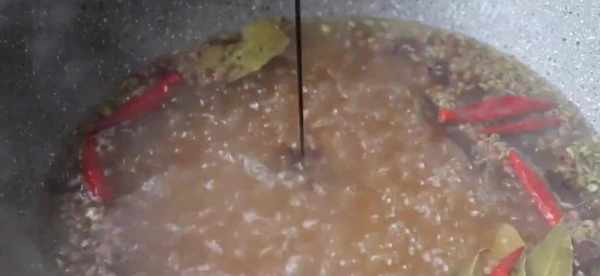 豆腐皮炸一下,吃起來口感會更加勁道。炸至金黃控油撈出,現在開始炸豆腐片,用筷子撥開,兩面都能夠炸金黃,之後控油撈出。準備幹辣椒、桂皮、香葉、花椒、八角、小茴香等大料放入鍋內,加入適量的清水燒開,水開之後加一點老抽,食用鹽,傢中如果有高湯,最好用高湯,這樣做出來口感會更香。