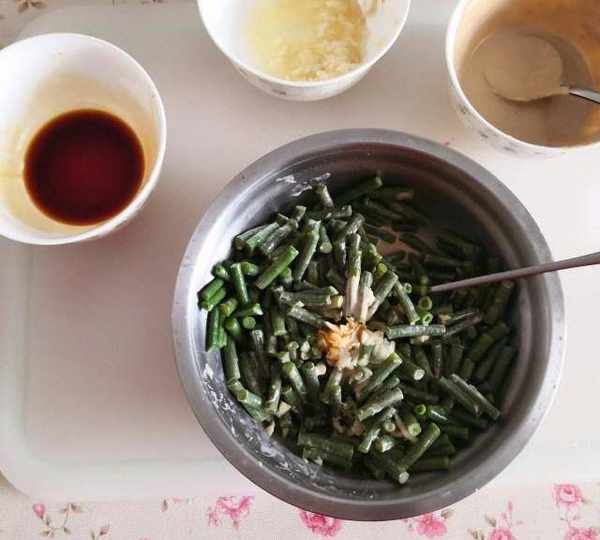 原料:豇豆、芝麻醬、醬油、陳醋、蠔油、鹽、糖、大蒜。
