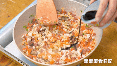 2.煮熟拌入1小勺醬油、1/2小勺香油調味。