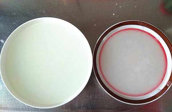 2.將準備好的一碗清水和一碗豌豆淀粉,放到一個大一點的容器中,化開。