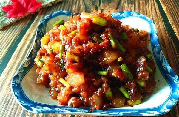 炒涼粉也很簡單,起鍋燒油,蔥蒜片爆香,下自己喜歡的配菜,我用的是蒜薹丁,炒香調味,然後下炒粉(這時炒粉最好切成四方塊),一道美味就出鍋瞭,搭配一些剩米飯放到裡面味道更贊!
