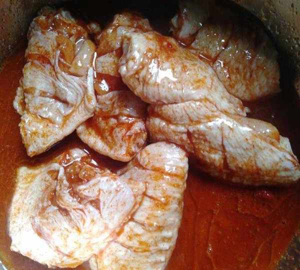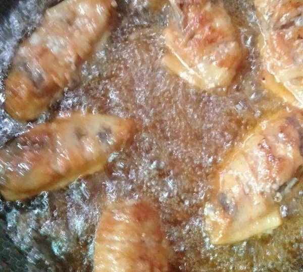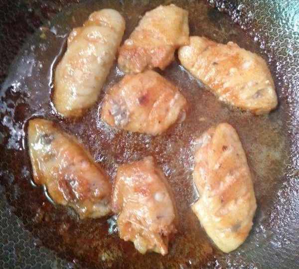 第8步、把雞翅從鍋裡撈出來,正反面都裹上蜂蜜汁。