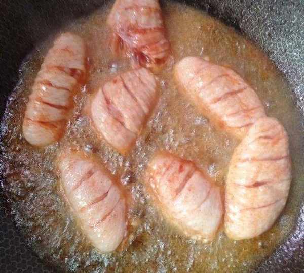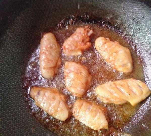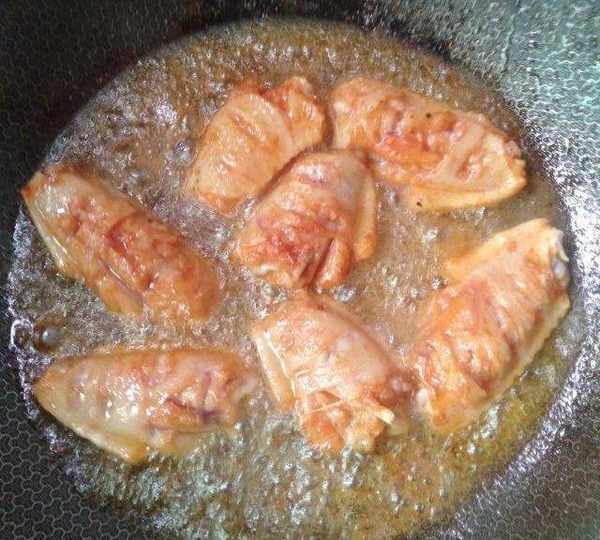 第4步、鍋裡放油五成溫放入雞翅,大火炸30秒定型。