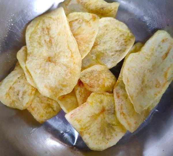 第11步、撒上一點鹽,就是原味薯片。