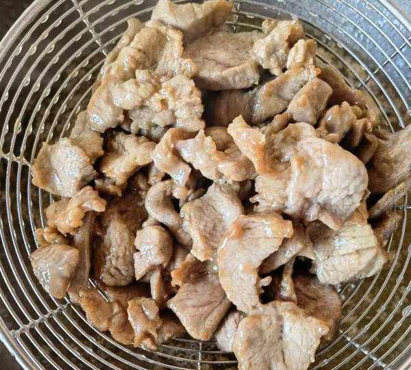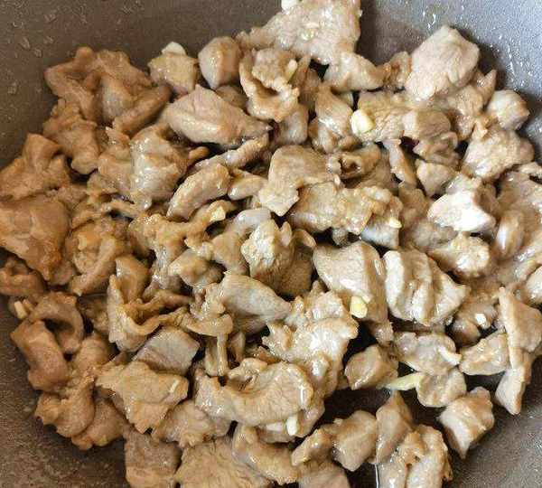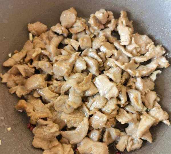 第12步、滑過油的羊肉倒入。