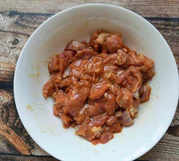 第1步、羊腿肉切小塊。