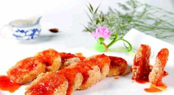 雞脯肉、雞蛋、面包糠、鹽、薑汁、花生油、番茄沙司、白糖、白醋、生粉、料酒、淀粉