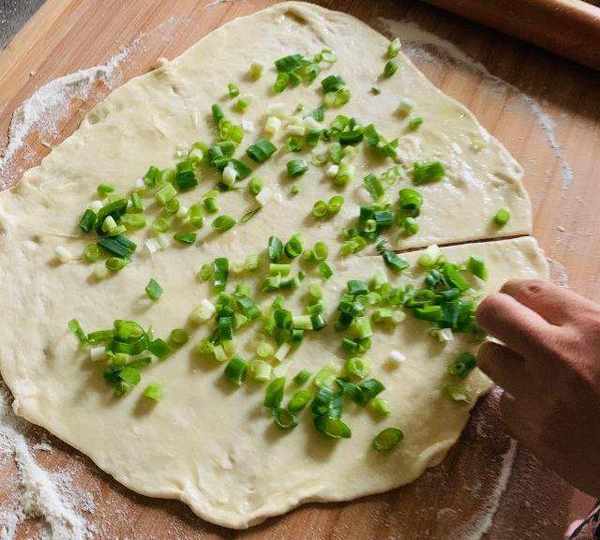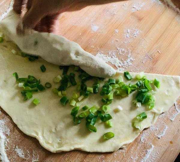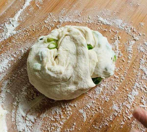 原料:高筋面粉、蔥花、鹽、食用油。