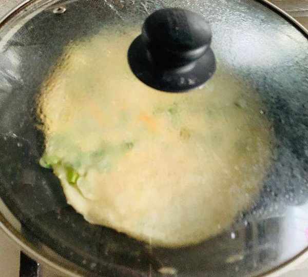 第14步、待一面變至金黃時,翻另一面繼續烙至。