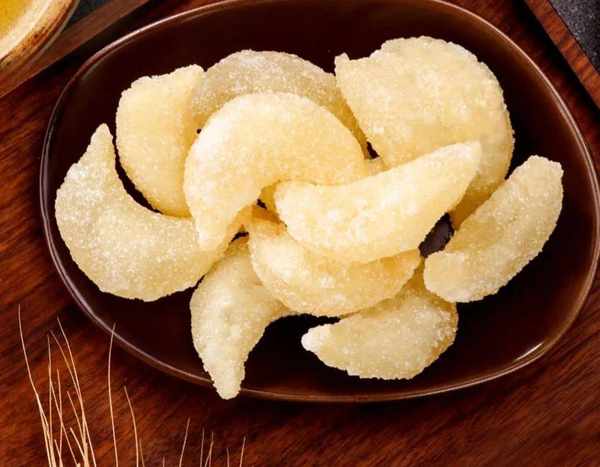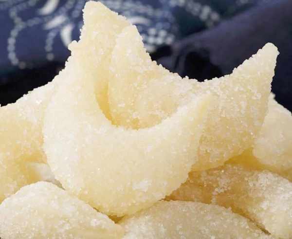 羊角蜜是黑龍江省地方風味名點。此點是黑龍江省面點師孟兆麟在西式糕點“羊角清酥卷”成形方法的基礎上,結合瞭我國面點中發酵面團的特點創制而成的。因其形似羊角,且在調制面團時加入一定量的蜂蜜,故名“羊角蜜”。