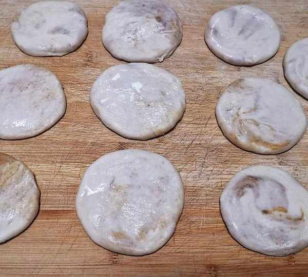 第11步、兩邊口收緊,搟成餅的形狀。