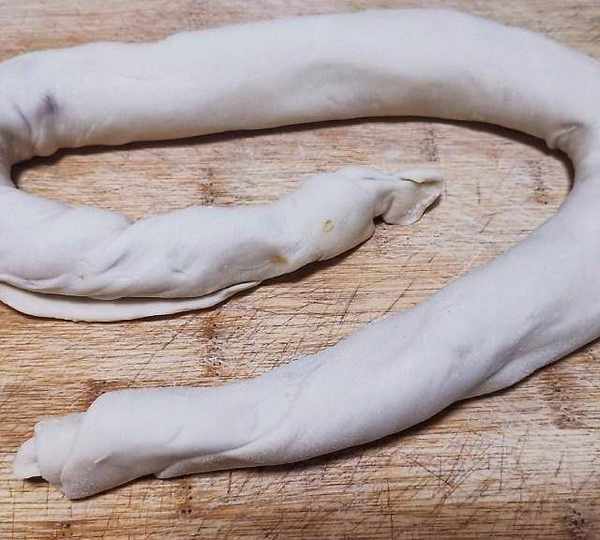 第9步、從下往上卷成長條。