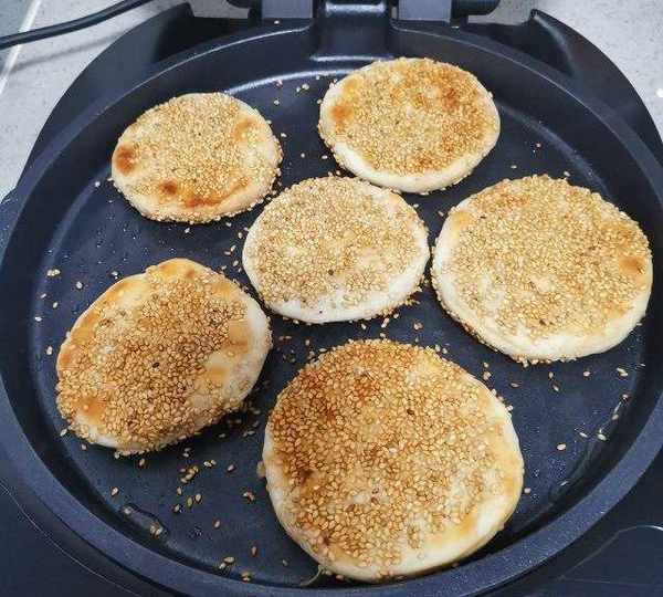 第13步、電餅鐺刷油,把做好的餅皮放進去,烙至兩面金黃即可。
