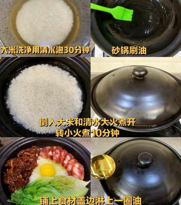 2、砂鍋中刷一層花生油倒入大米加清水(米1:15水比例)大火煮開轉小火燜煮10分鐘;