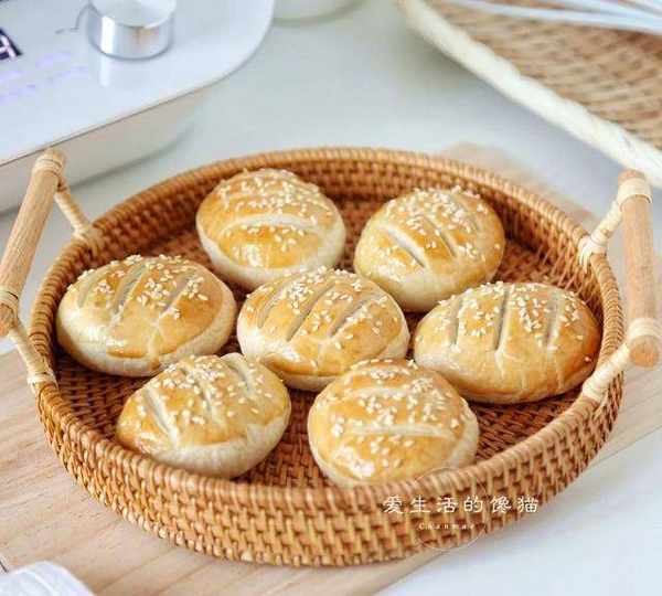 原料:中筋粉、豬油、水、糖、熟芝麻、熟糯米粉、清水、細砂糖、花生油、豬油、中筋粉。