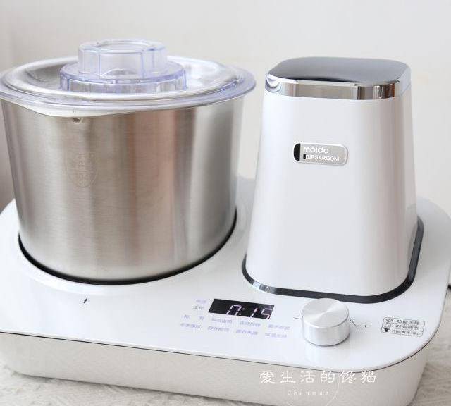 第4步、把揉面桶放入moido廚師機機身裡,啟動烘焙出膜鍵,大約用時10分鐘。