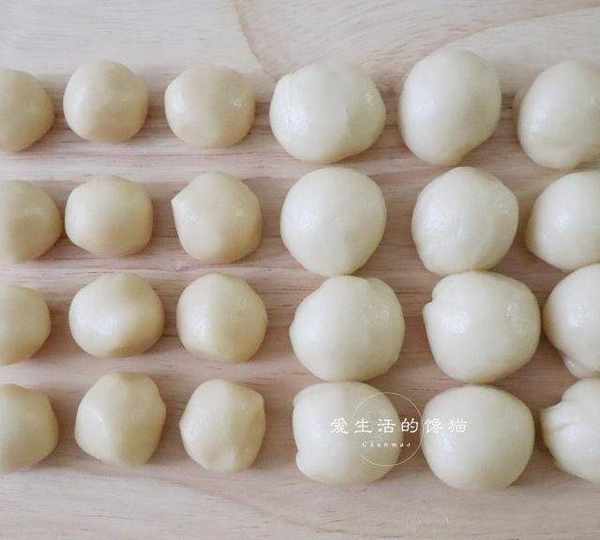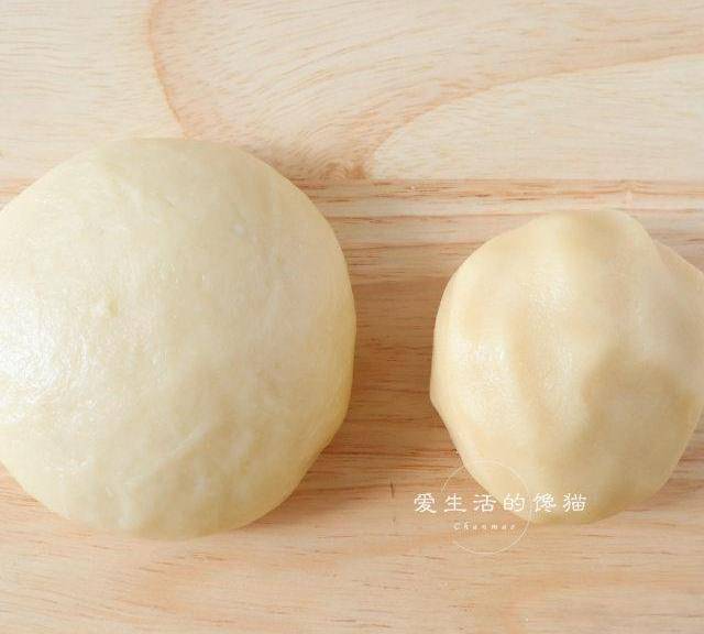 第7步、將水油皮的材料和油酥的平均分成12等份。