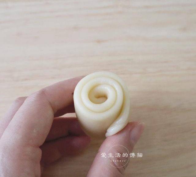 第10步、從上而下的卷起來,收口朝下,全部做好靜置15分鐘。