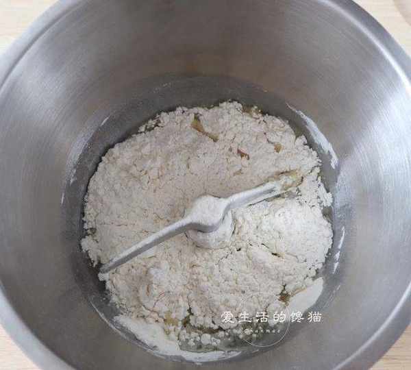 第3步、將水油皮的材料放入揉面桶裡。
