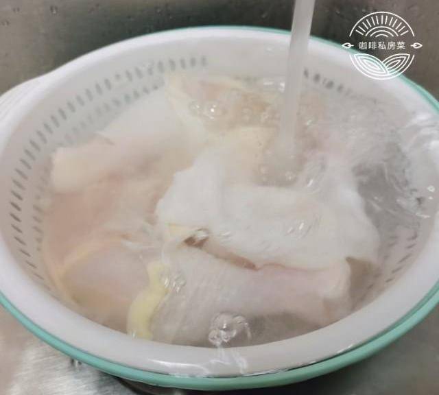 第3步、將雞腿浸泡20分鐘,再流水沖洗5分鐘。