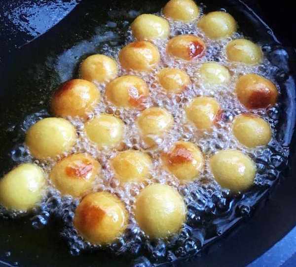 第8步、將紅薯丸子二次復炸口感更贊哦。
