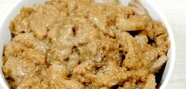 豬肉先加白酒、雞精、生抽、蠔油攪拌均勻,
