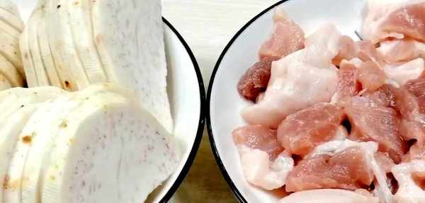 下面我就給大傢介紹這道又香又好吃的香芋粉蒸肉的做法: