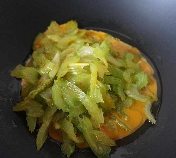 第4步、倒入焯過水的西芹。