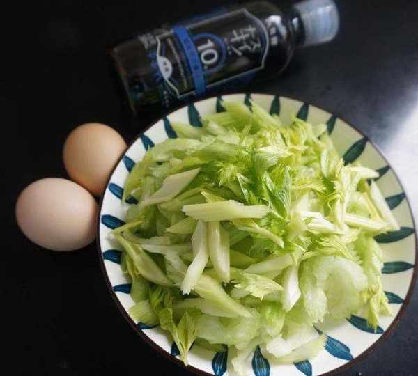第1步、準備食材:西芹去掉老莖切成小片,兩個雞蛋。