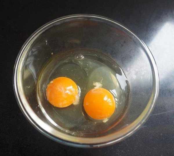 第2步、在碗裡打入2個雞蛋。