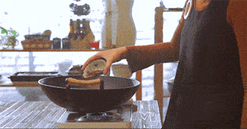 2、倒入白芝麻小火炒幹。