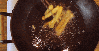 8、油燒至7成熱,放入海鮮菇炸至金黃,撈起瀝油。