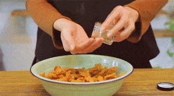 10、在炸好的海鮮菇上面撒上椒鹽攪勻。
