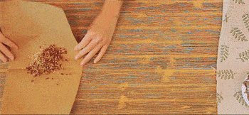 3、將炒好的香料倒在紙上,將紙對折,另外3邊也折起來,紙用圓木棍搟碎,用漏篩將粗的香料過濾出去。