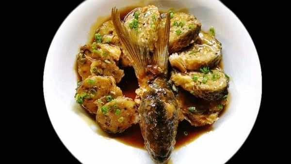 放入芡汁調料勾芡後下入尾油,淋在擺好的鯪魚件上,撒入少許的蔥花即可。